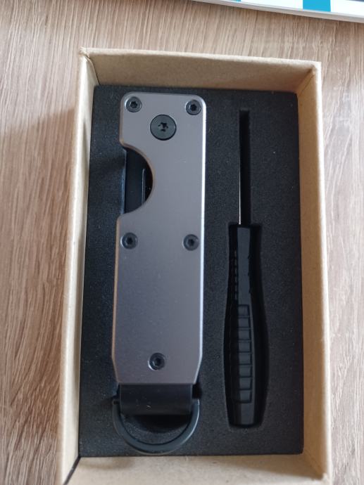 Srebrni metalni drzac za kljuceve s integriranom zakackom koja moze sluziti kao mali novcanik i drzac kljuceva u jednom