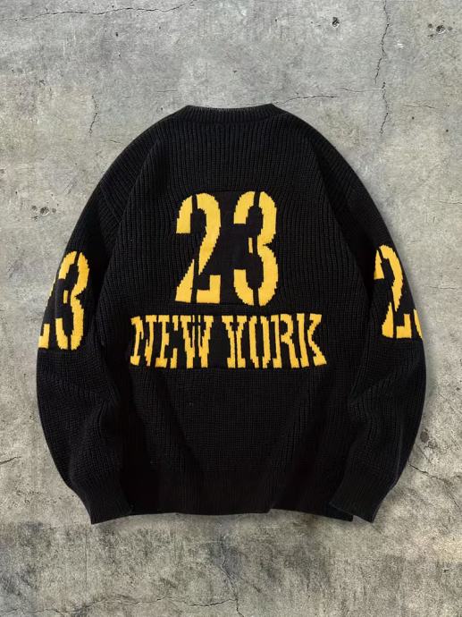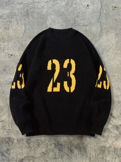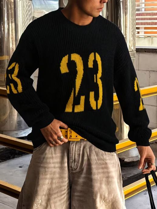 ANDREILEE Muški predimenzionirani pleteni pulover s brojevima i slovima 23 - dugi rukavi, okrugli izrez i