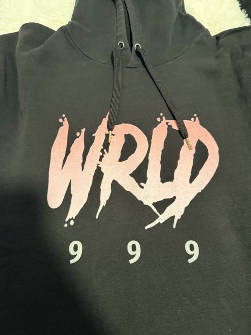 Crna hoodie majica s “WRLD 999” printom na prednjoj strani.