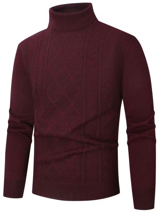 Muški džemper s podstavom od zadebljanog flisa - dugi rukavi, zimski topli, crveni, regularni kroj, ležeran pulover za jesen/zimu, svakodnevnu i svečanu odjeću, pleteni