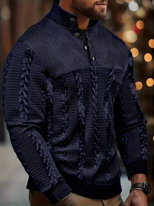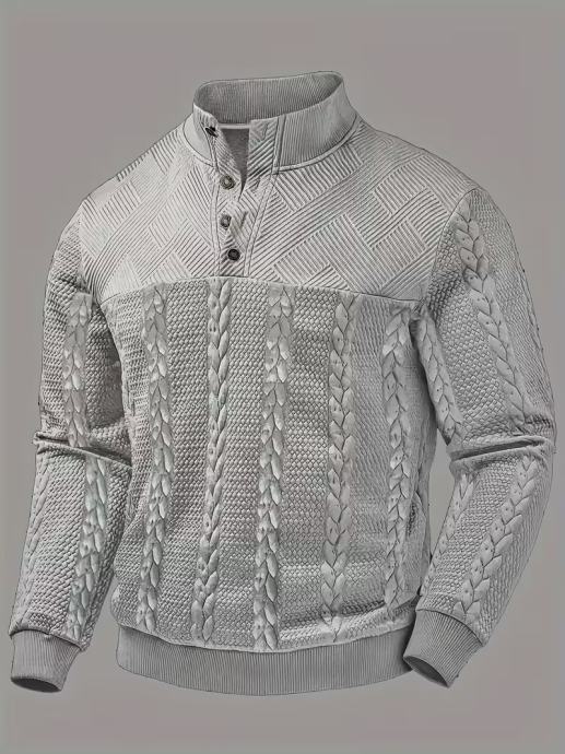 Muški Henley pulover dugih rukava - Mekani rastezljivi pulover na kopčanje s prugastim žakard dizajnom, ležerna jesensko/zimska odjeća za van, regularni kroj, jednoredno kopčanje, uski rub, bez remena, idealno za ležernu odjeću, zimska ležerna odjeća | Prugasta žakard košulja | Konstrukcija, Džemper s kapuljačom, Pleteno, Muški džemper i pulover, Muški džemper pletenina, Košulja za muškarce, Muška Henley košulja, Muška odjeća, Muški pulover