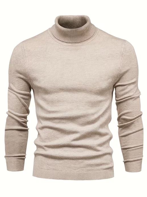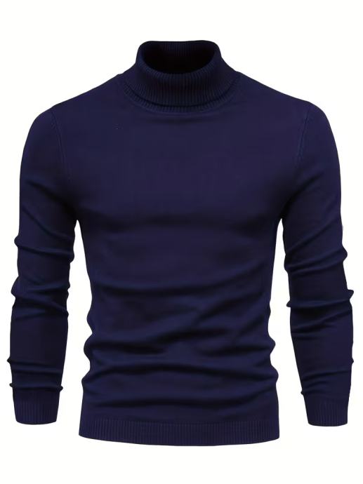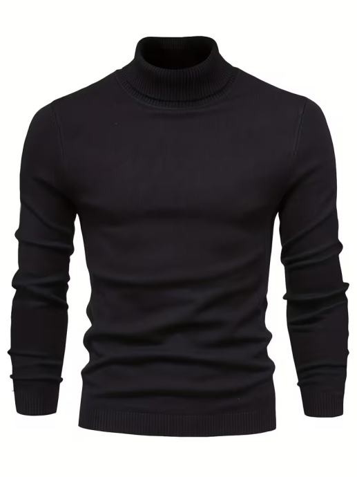 Muški jednobojni crni džemper s visokim ovratnikom - dugi rukavi, zimski topli pleteni pulover, ležeran elegantni džemper s dolčevitom za jesen i zimu, ručno periv, regularni kroj, svestrani top