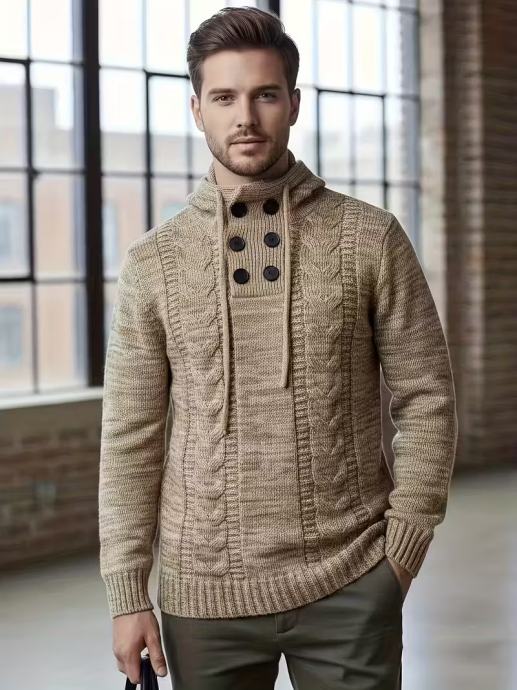 Muški pleteni pulover s kapuljačom, ležeran stil, poliesterska tkanina
