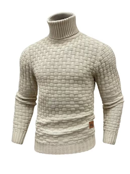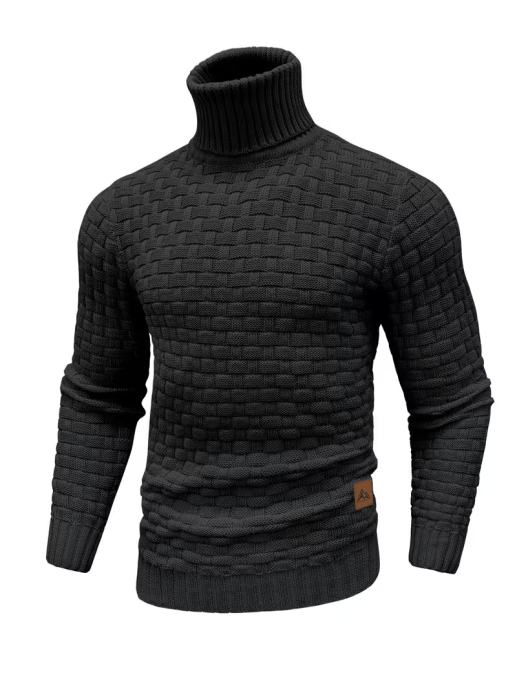 Muški zimski džemper s visokim ovratnikom | Uzorak vafla, otporan na vjetar, ležeran stil, udoban i svestran