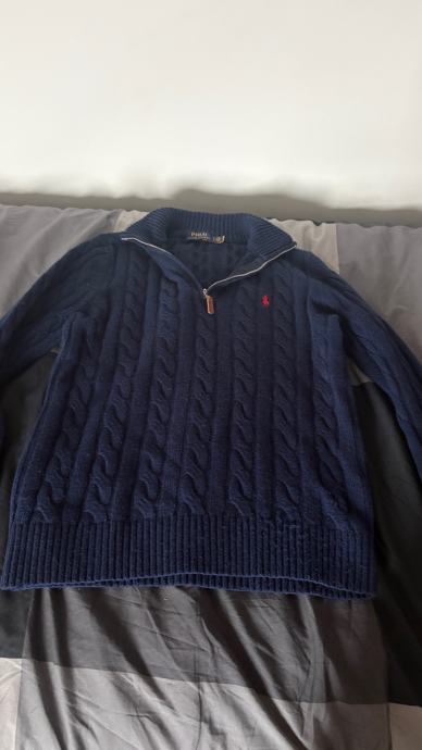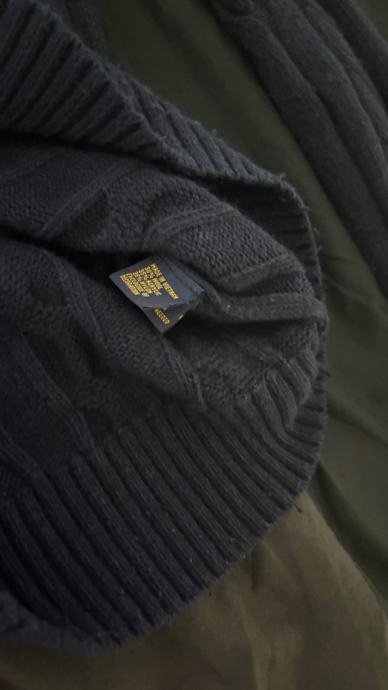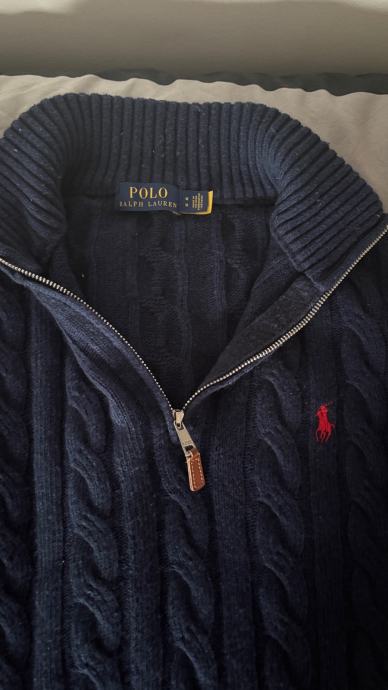 Prodajem malo nošeni muški Ralph Lauren quarter zip pulover u tamno plavoj boji, veličine M. Pulover je s dugim rukavima i prepoznatljivim logom, idealan za jesenske i zimske dane. Pleteni uzorak na puloveru daje mu elegantan i stilski izgled, savršen za svakodnevno nošenje.
