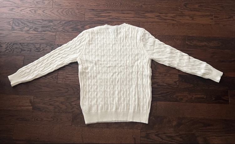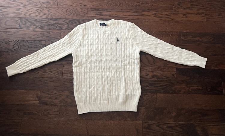 Nova Ralph Lauren vesta bijele boje, veličine M(dostupne su u svim veličinama) s dugim rukavima i pletenim uzorkom. Izrađena je od kvalitetnog pamuka i prodaje se s originalnom etiketom. Elegantnog je dizajna s prepoznatljivim logom brenda, savršena za slojevito odijevanje.