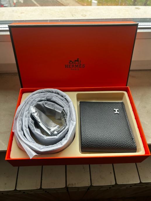 Prodajem nov Hermes poklon set koji uključuje muški remen u crnoj boji i novčanik. Set dolazi u elegantnoj prezentacijskoj kutiji, s etiketama i potpuno je nekorišten. Remen imaH kopču, a novčanik je izrađen od kvalitetne kože s prepoznatljivim Hermes logotipom.