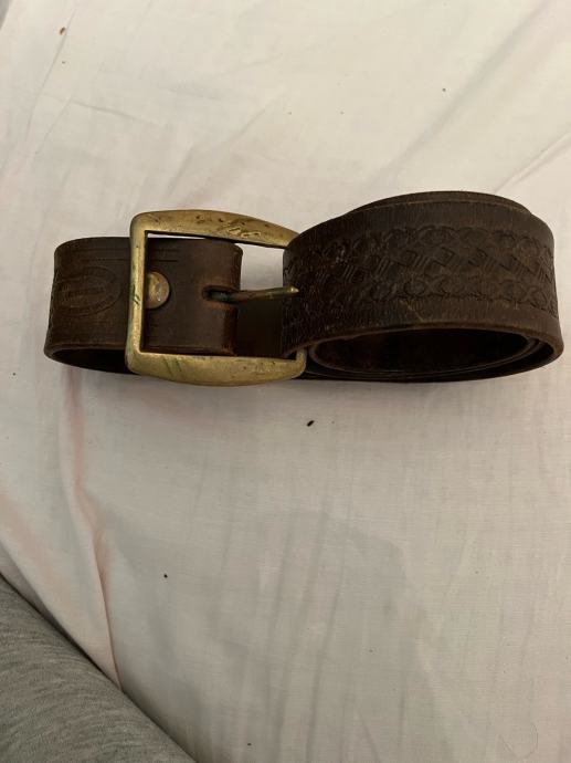Prodajem kožni remen dužine 100cm od iznimno kvalitetne kože ,engleskog proizvođača BRAIAN & FOSTER.Kopča je masivna - mesingana a remen je širine 4,5 cm i po čitavoj dužini je izrađen pleter.MOB 098/344 483