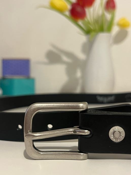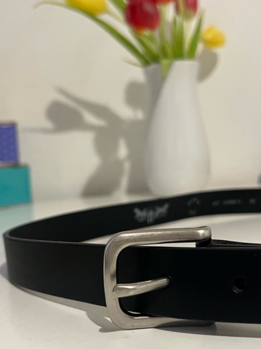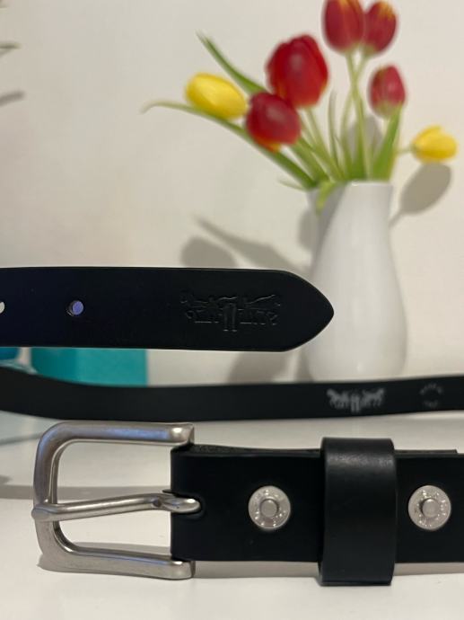 Prodajem Levi's kožni remen u crnoj boji, izrađen od 100% goveđe kože. Remen je dužine 100 cm i dolazi s klasičnom metalnom kopčom. Potpuno je nov, ali bez etikete. Kvalitetan i izdržljiv komad koji odlično pristaje uz svakodnevne kombinacije.