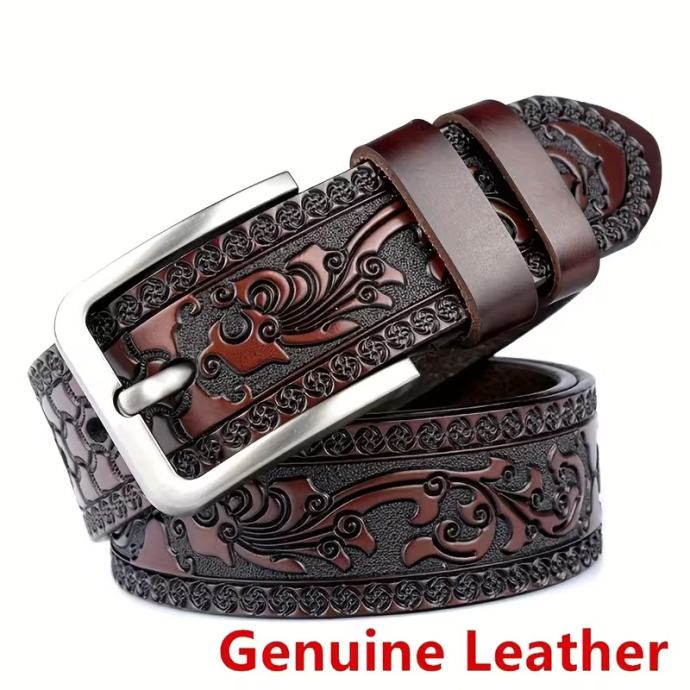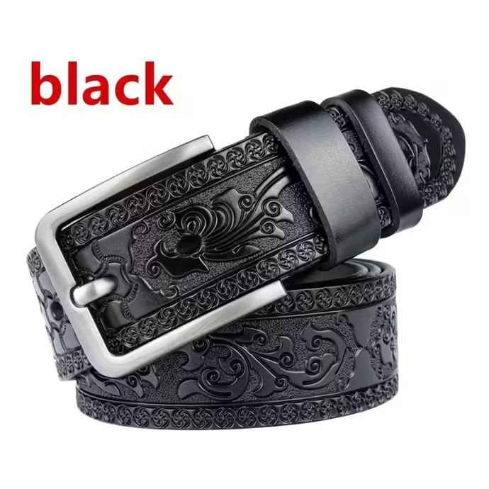 LVIGC Muški remen od prave kože, crni cvjetni dizajn, ležeran stil s automatskom četvrtastom kopčom od legure, izdržljiv, višenamjenski, periv ručno, za Valentinovo, Mardi Gras, Dan svetog Patrika