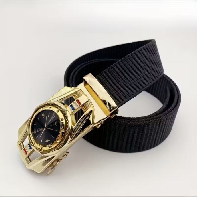 Muški ležerni remen za vanjske aktivnosti s dizajnom sata - prozračni najlon, automatska kopča, ručno pranje, ležeran stil, ležeran remen|dizajn sata|remen s automatskom kopčom