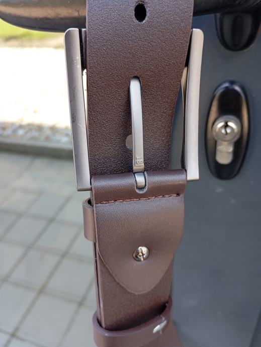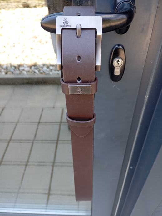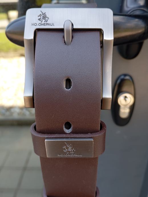 Prodajem muški remen 120cm dužine sa kopčom. Remen je od umjetne kože smeđe boje. Remen je potpuno nov .