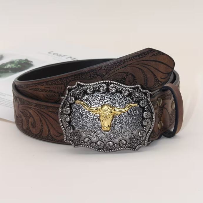 Muški široki kaubojski remen u western stilu s kopčom u obliku glave bika - vintage reljefni PU remen za ležerno nošenje na otvorenom i za zabave, izdržljiv poklon za muškarce, kaubojski dodaci, pogodno za žene SPU: 409896266 Kategorija: Ženski remeni
