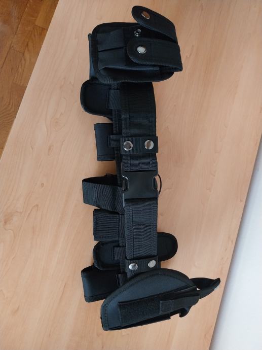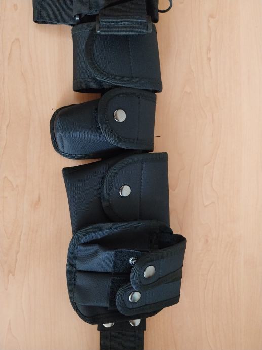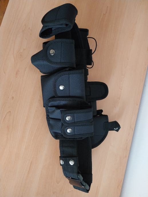 Crni muški opasač 110 cm, prilagodljive dužine s 9 praktičnih dodataka za razne potrebe. Nikad korišten, potpuno nov.