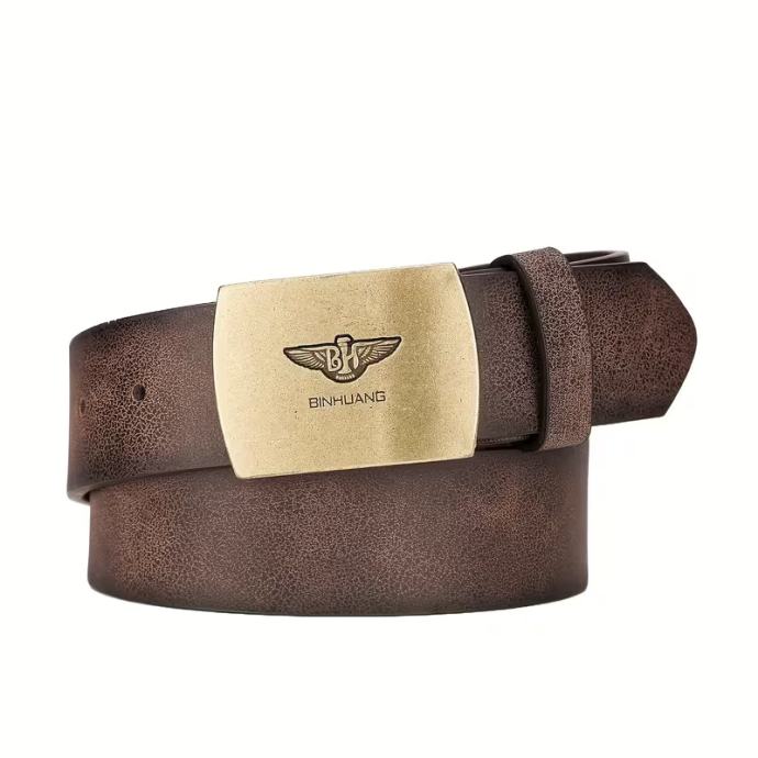 Smeđi vintage remen od PU materijala koji je ležeran i moderan, savršen za poklon.