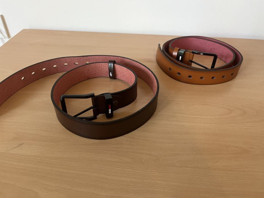 Prodajem dva komada Tommy Hilfiger remena, svijetlo smeđa i tamno smeđa boja. Cijena 20€ po komadu. Remeni su novi i nenošeni. Veličina oba remena je 107 (od ruba kopče do srednje rupe - 107cm), ali remen se može vrlo lako skratiti na bilo koju dujinu.