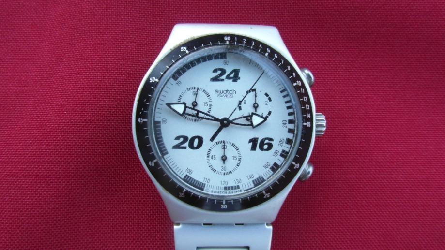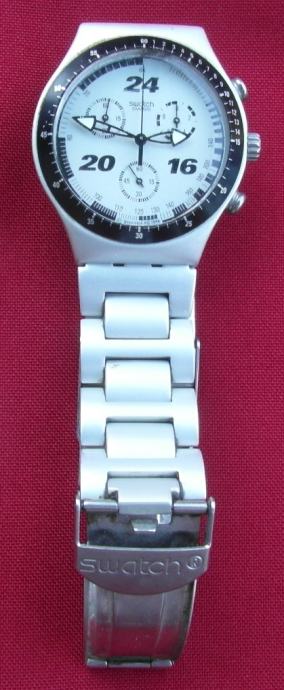 1996 Black & White Swatch Swiss Made Chronograph Watch, Steel Aluminiu