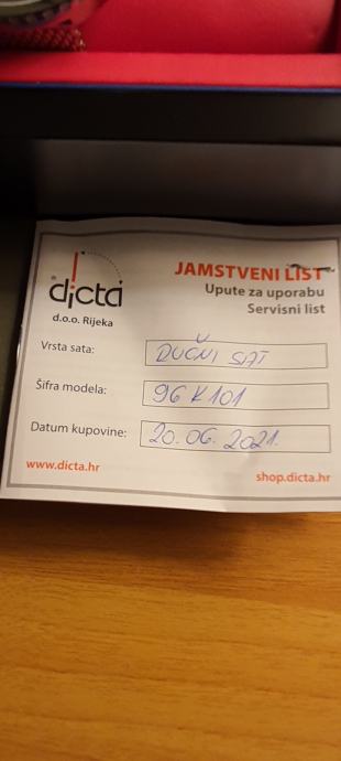 Posebnosti: najtočniji sat na svijetu s kliznom sekundarkom, specijalno pakiranje sa dodatnim kožnim remenom.