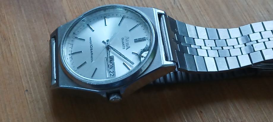 Alba quartz dan i datum vintage muski sat sat radi tocan je uredno prebacuje sve funkcije,mova baterija,dobra narukvica. Potrebna zamjena stakla osim toga sat u vrlo dobrom satnju. Šaljem posta,tisak,njuskalo.