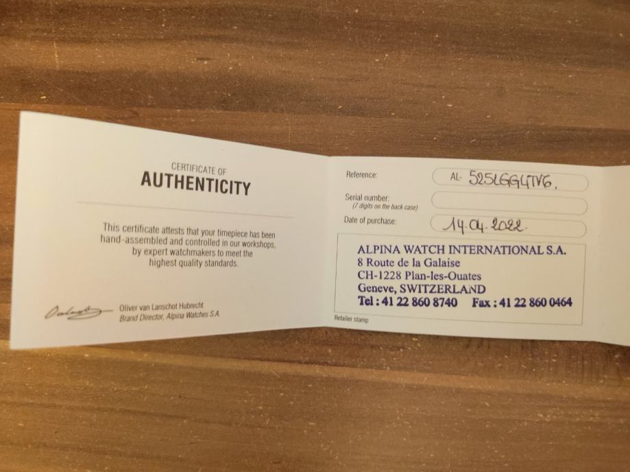 ALPINA AL-525 AUTOMATIC CALIBER GREY COLOR DIAL WITH APPLIED BEIGE COLOR LUMINOUS INDEXES DATE WINDOW AT 3 O’CLOCK SEE-THROUGH CASE-BACK SCREW-IN CROWN MOVEMENT FEATURES