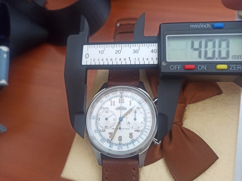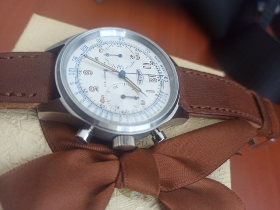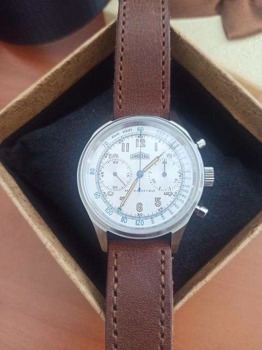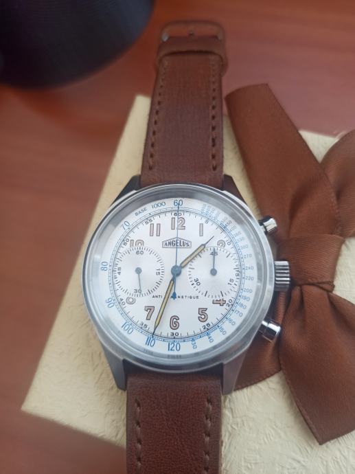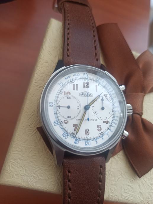 Prodajem vrlo rijedak i dobro očuvan švicarski sat Angelus Cronograph s Valjoux mehanizmom.