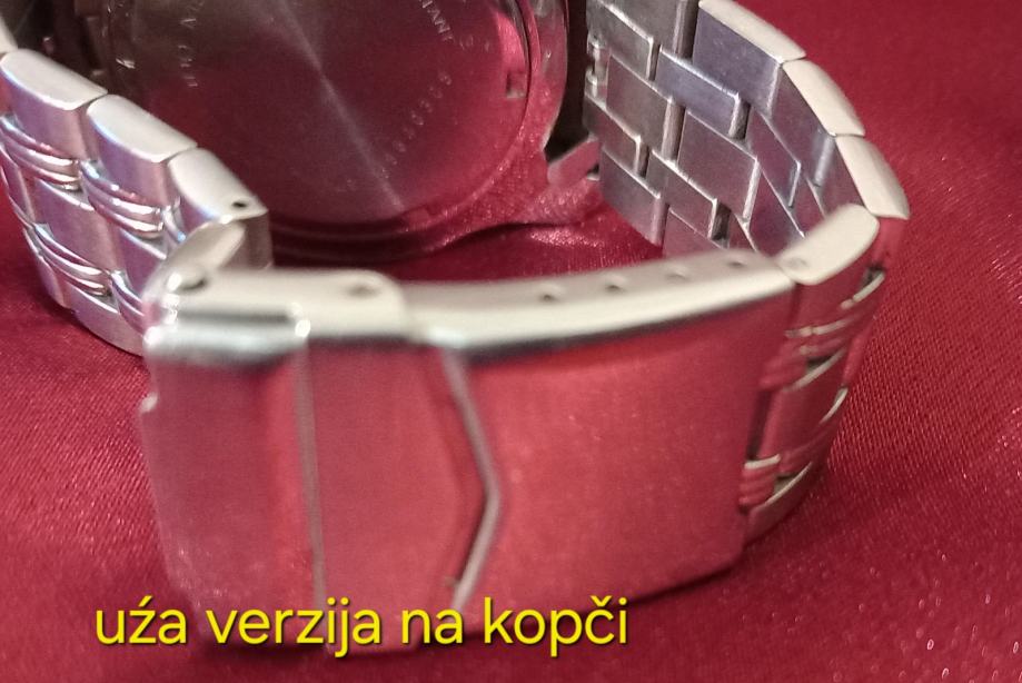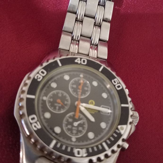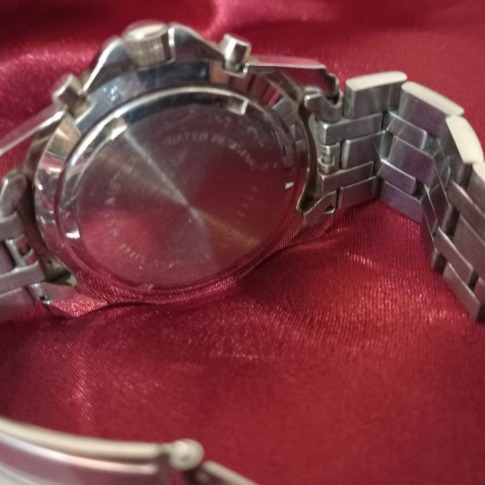 Funkcije: Sat ima kronograf (mjerač sekundi, minuta i sati) i prikaz datuma.