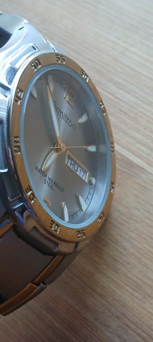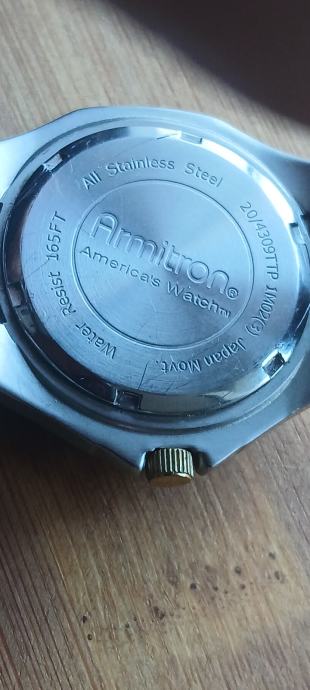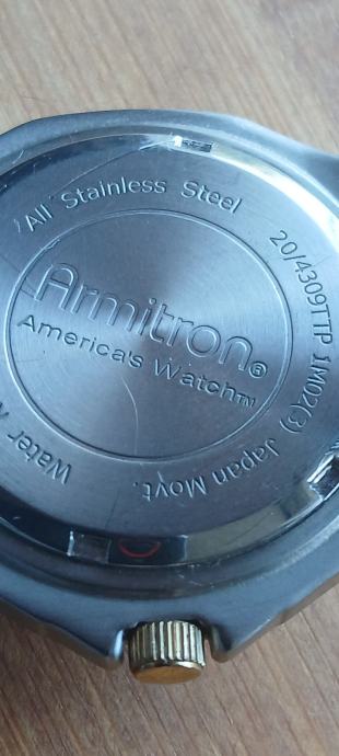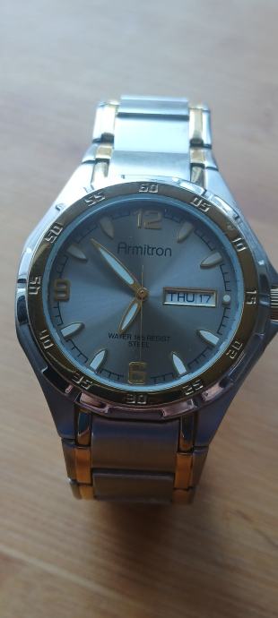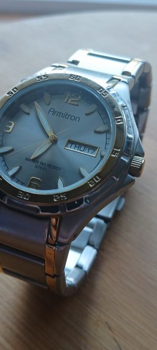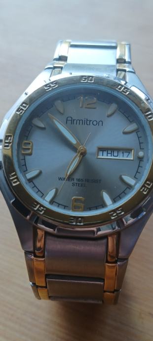 Armitron muski sat dan i datum,ispravan,u vrlo dobrom stanju muski sat u čeliku promjera 38mm,orginalna dvobojna narukvica,nova urarska baterija. Šaljem pošta,tisak,njuškalo.