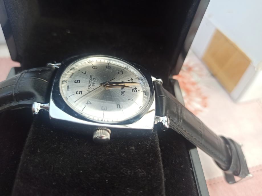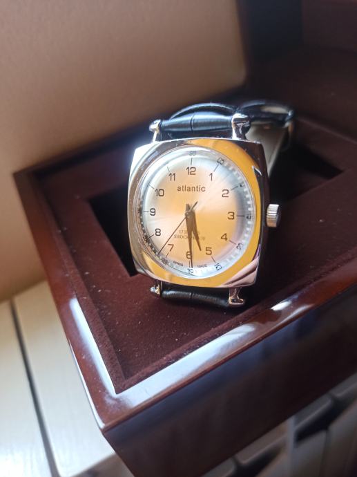 Prodajem prekrasan starinski sat navijač Atlantic koji ima kvalitetan Švicarski satni mehanizam s 17 jewels (rubina) te očuvano kućište i nov kožni remen.