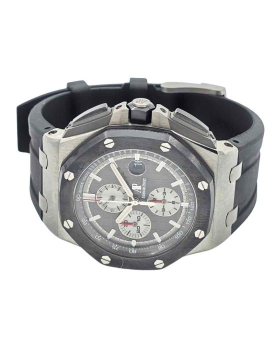 Audemars Piguet Royal Oak Offshore Black ref. 26400IO.OO.A004CA.01 iz 2017. godine predstavlja izuzetno poželjan sat za kolekcionare i ljubitelje visokog časovničarstva, spajajući snagu, prestiž i bezvremenski dizajn u jednom upečatljivom modelu.