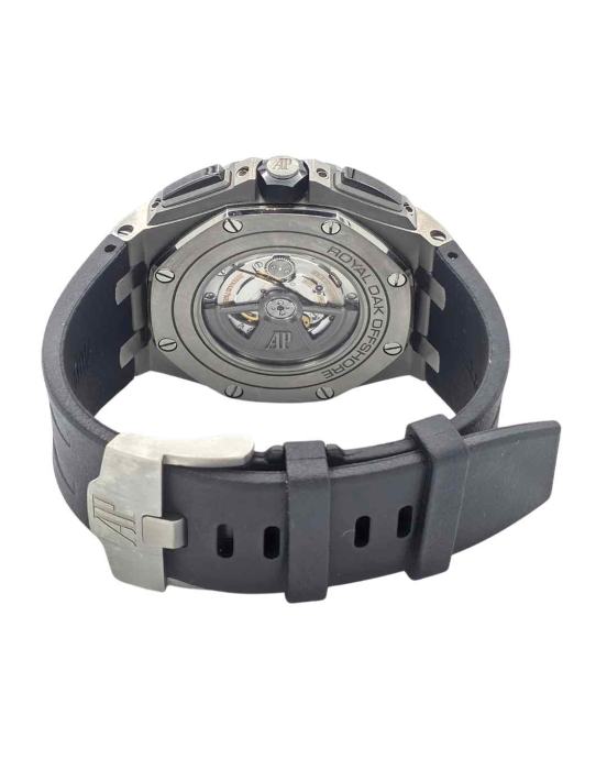Audemars Piguet Royal Oak Offshore Black iz 2017. godine, referenca 26400IO.OO.A004CA.01, predstavlja snažan izraz sportskog luksuza i vrhunske švajcarske izrade. Ovaj model pripada prestižnoj Royal Oak Offshore kolekciji, poznatoj po robusnom dizajnu, tehničkoj sofisticiranosti i prepoznatljivoj estetici Audemars Piguet brenda.