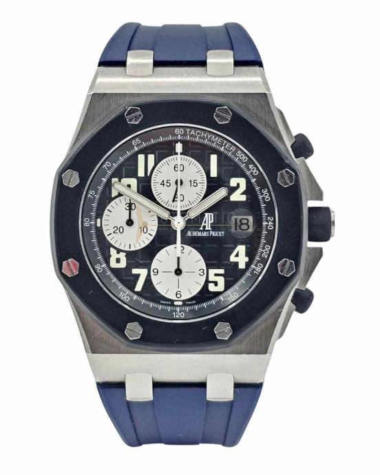 Audemars Piguet Royal Oak Offshore Blue iz 2010. godine, referenca 25940SK.OO.D002CA.01A, predstavlja jedan od prepoznatljivih modela iz legendarne Offshore kolekcije, poznate po snažnom dizajnu i sportskom luksuzu. Ovaj sat spaja tehničku izdržljivost i estetsku prepoznatljivost koja je Audemars Piguet svrstala među najcenjenije časovničarske kuće na svetu.