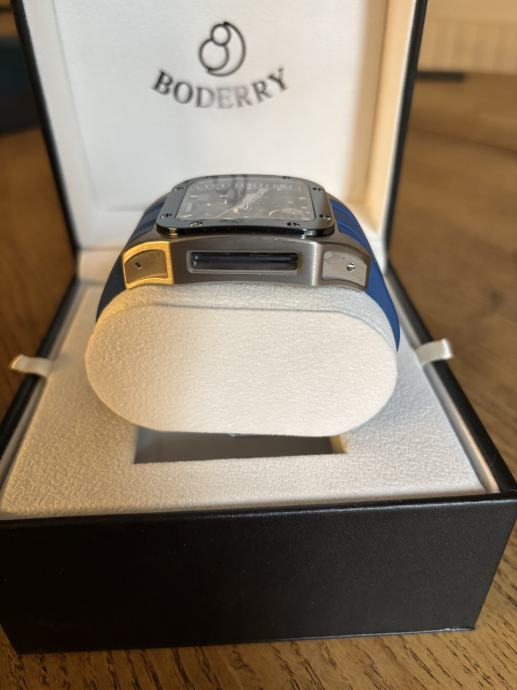 Boderry Storm automatik, kuciste titansko,velicina 42 mm,mehanizam vlastite proizvodnje,21 rubin, rezerva 72+sata, safirno staklo sa svih strana,Swiss Super-lumiNova BGW9, stanje kao novo, 2-3 minijaturne crtice sa doljnje strane, dolazi sa originalnom kutijom i papirima.Bez zamjena.