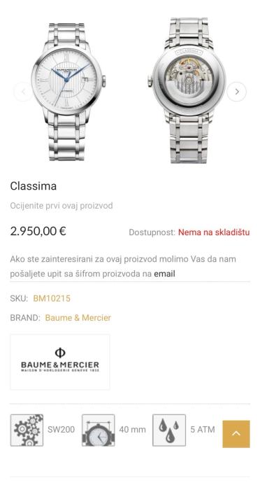 Prodajem novi sat Baume & Mercier Classima 10215, automatic, 40mm. Pod garancijom je 1 godinu. Ne šaljem poštom, isključivo primopredaja na području Zagreba.