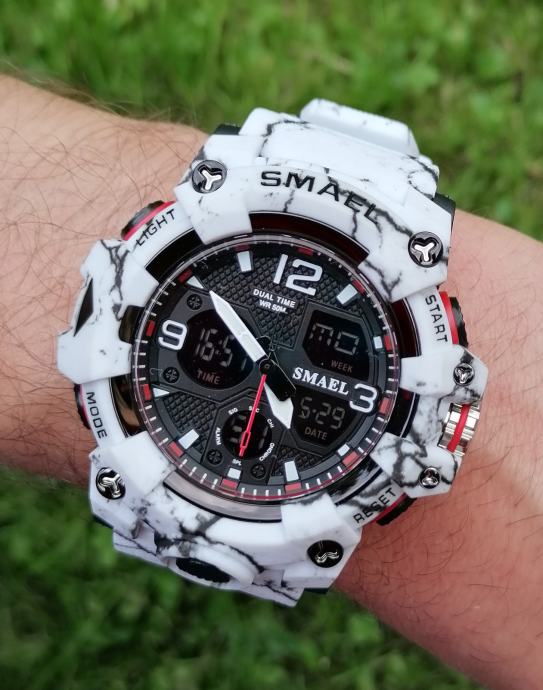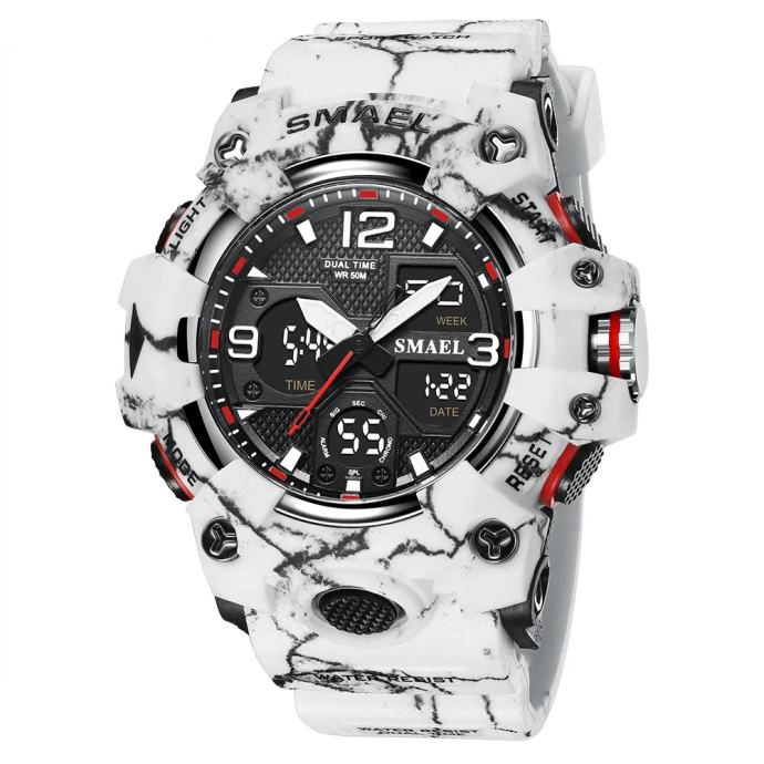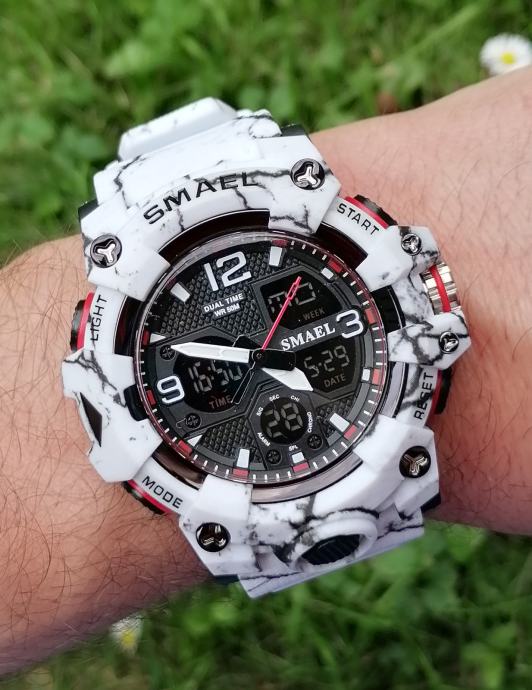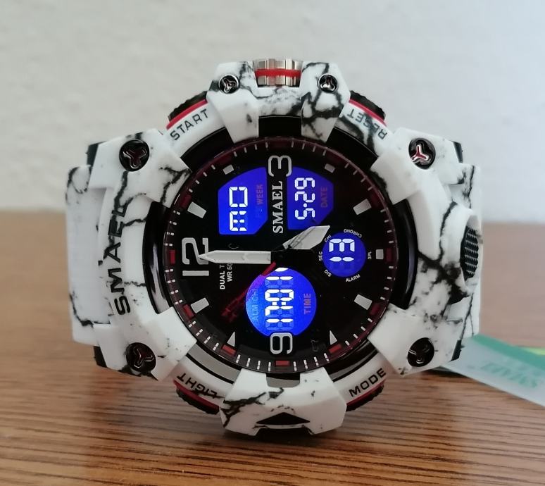 Novi fashion bijeli maskirni SMAEL sportski analogno-digitalni, kvarcni, 50m vodootporni ručni sat.