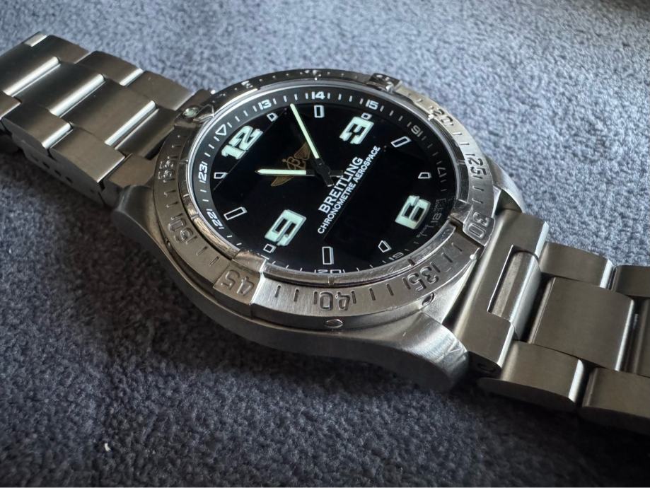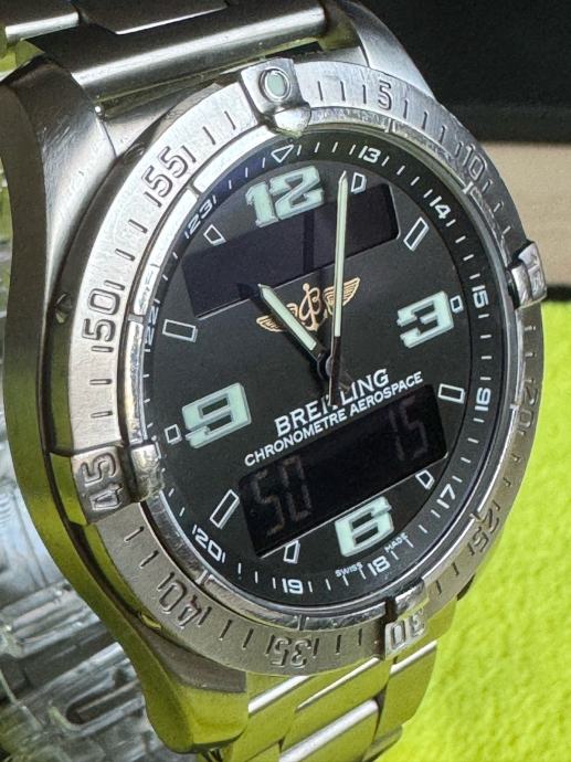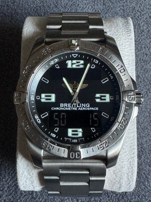 Na prodaju je originalni Breitling Aerospace Avantage, godište 2008., u rjeđoj konfiguraciji s luminiscentnim arapskim brojevima 3, 6, 9 i 12. Model je izrađen od titana, izuzetno lagan i udoban za nošenje, s poznatim Breitling SuperQuartz mehanizmom visoke preciznosti.