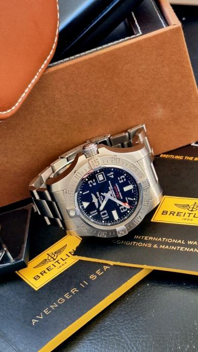 Prodajem Breitling Avenger II Seawolf ref. A17331 dobijen od kolege u zamjeni. Sat dolazi u full setu, na pro 3 metalnom remenu, kupljen 2016 ali u top, top stanju, stvarno jako malo nošen.