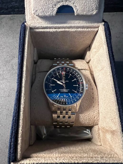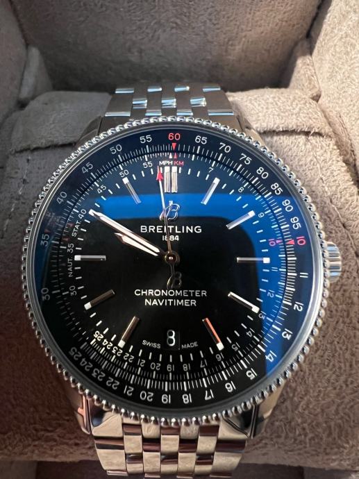 Prodajem Breitling Navitimer 41 u crnoj boji na metalnoj narukvici. Sat je doslovno kao nov, djelomično još zašttna folija na njemu. Garancija do 2028 godine, full set.