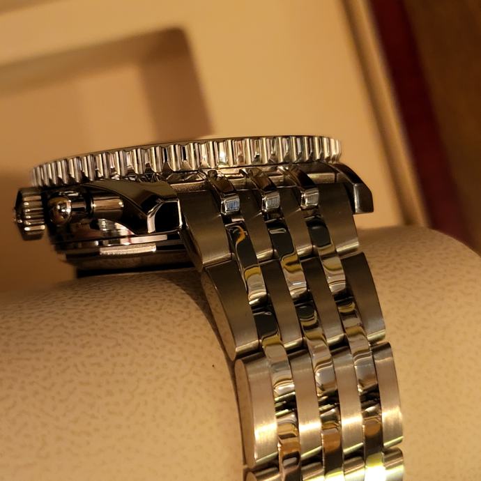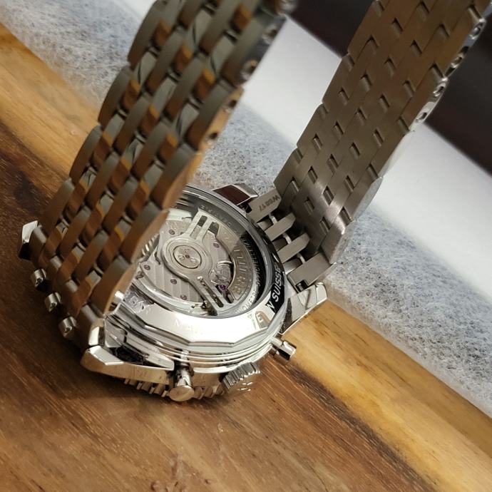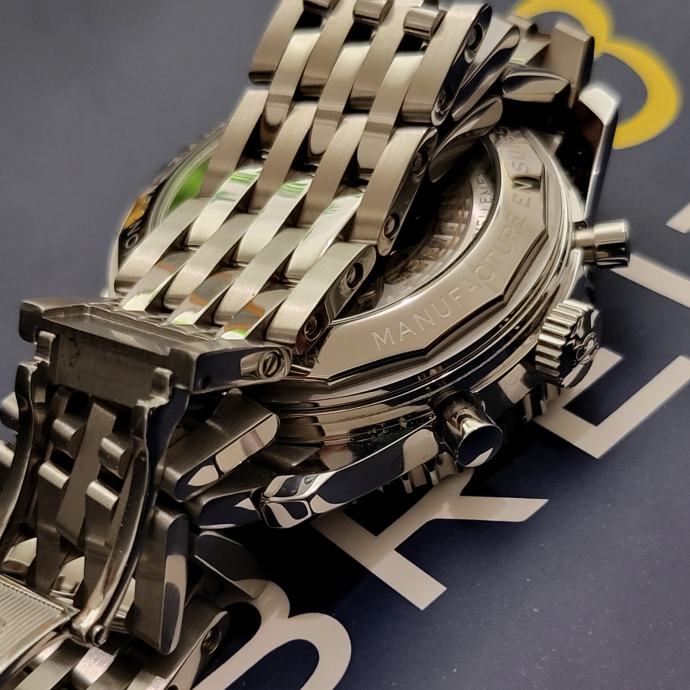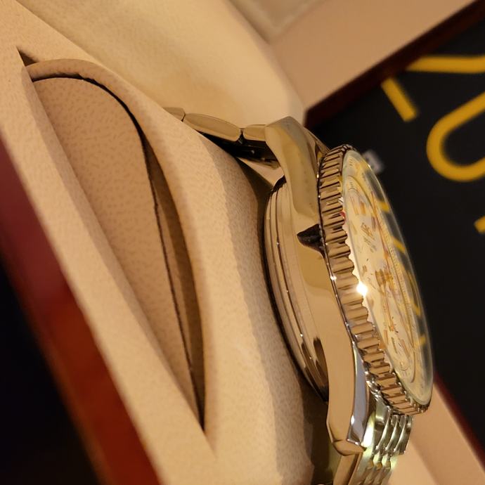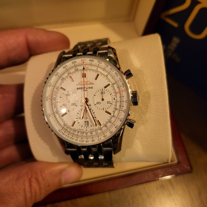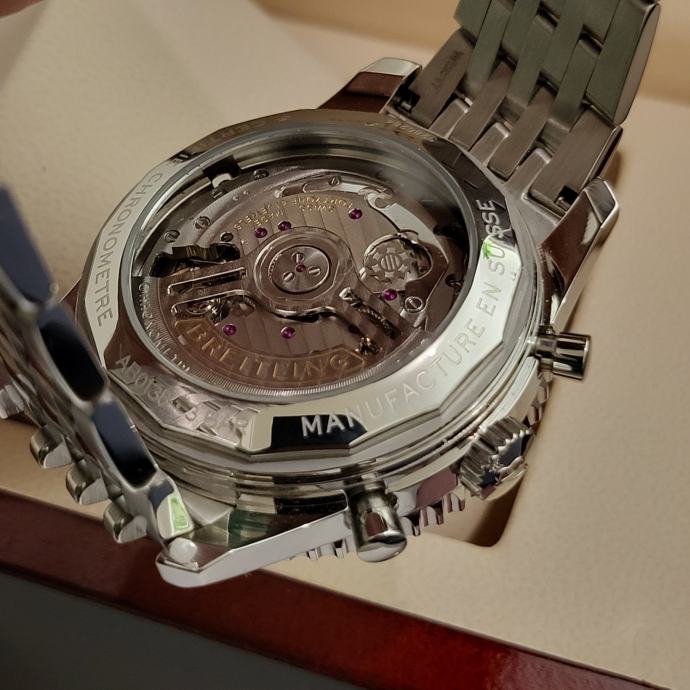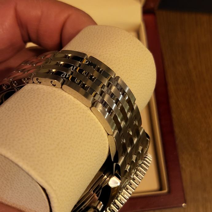 Krasi ga bjeli dial,safir premaz,safir staklo spreda i zada,superluminova,prekrasna narukvica i prekrasan otvoren kalibar B01,sve gravure 1:1.Uz sat ide i drveni box,vrečica