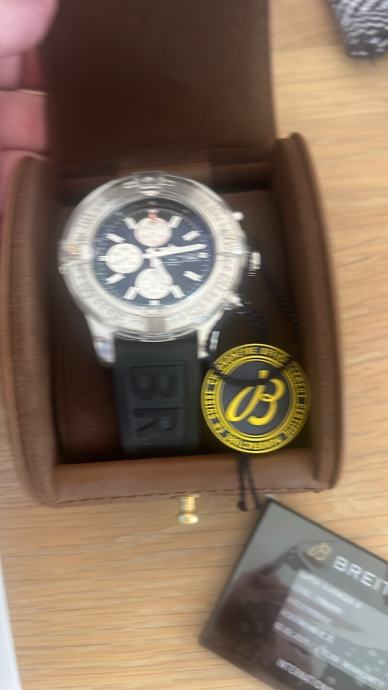 Prodajem malo nošeni Breitling Super Avenger II sat s crnom brojčanicom i kronografom. Sat dolazi s originalnom crnom gumenom narukvicom i srebrnim kućištem od nehrđajućeg čelika.