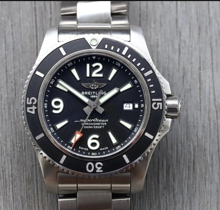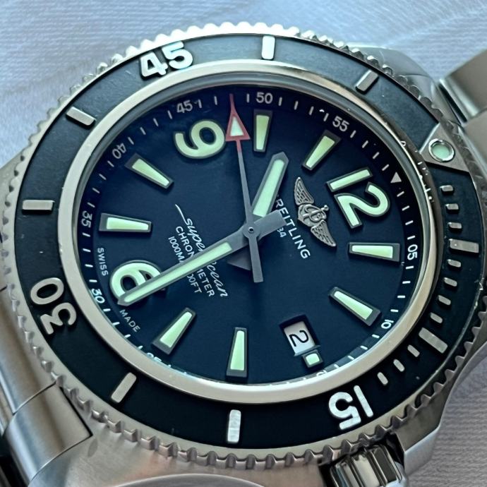 Breitling Superocean, automatic, ref broj A17367D71B1A1 u punom kompletu. Sat u odličnom stanju, rijetko nošen. Na metalnoj narukvicu još tvornička folija! Pristajem na provjeru sata koji se nalazi u Zagrebu.