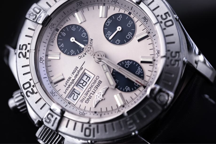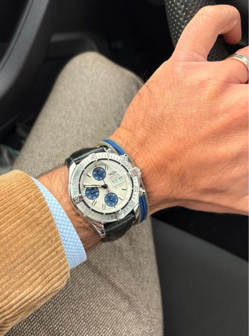 Bijeli cifer s tri pomoćna brojčanika u plavoj boji.