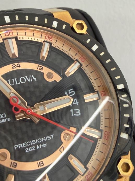 Bulova Precisionist Icon Rose Gold Tone Carbon Fiber Dial Watch 98B152