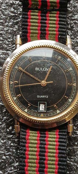 Bulova quartz s datumom,promjera 35 mm. Ispravan u potpunosti uredno prebacuje datum,nova urarska baterija.sat trenutno na nato remenu ali dolazi uz jos jedan kozni sa slike 3.