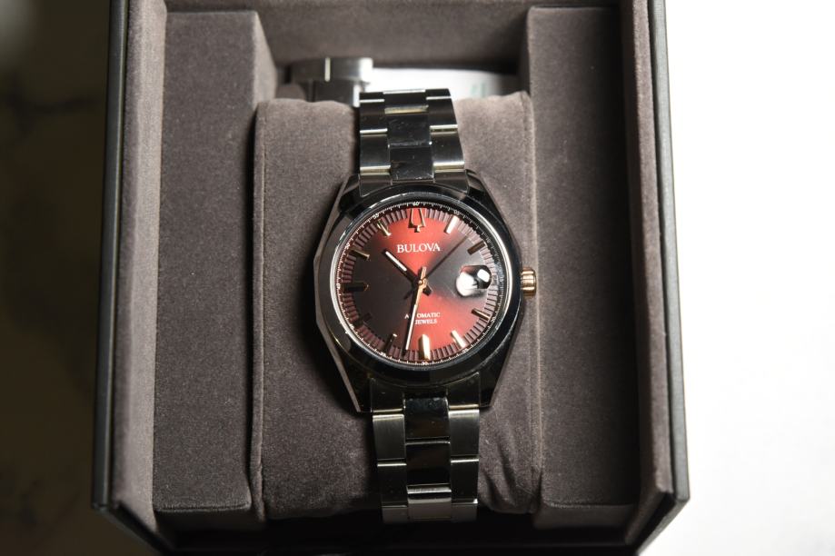 Prodajem malo nošeni muški sat Bulova Surveyor 98B422 s atraktivnim crvenim brojčanikom i metalnom narukvicom. Sat dolazi u kompletu sa svom originalnom dokumentacijom i kupljen je u Hrvatskoj. Elegantan i pouzdan model za svakodnevno nošenje i posebne prilike. Prvi vlasnik, satovi iz osobne kolekcije. Svi satovi su iz moje kolekcije, i svima sam prvi ili drugi vlasnik. Popust za kupnju više satova. Zamjene samo ako uzmete 2 ili više mojih satova za vaš skuplji, ili nudite vaš sat i doplatu.