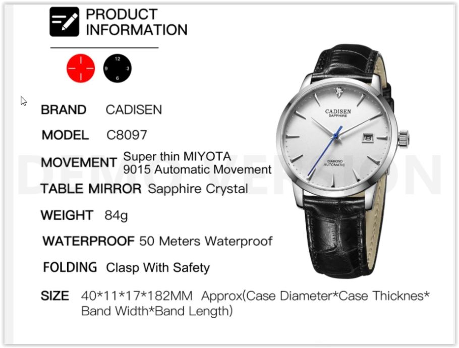 CADISEN Top Brand Men Wristwatch MIYOTA 9015 Mechanical Automatic Watches 50M Waterproof Luxury Diamond Dial Date Calendar
