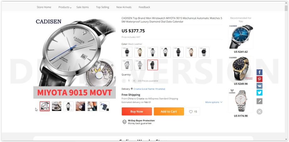 Sa vrhunskim high beat MIYOTA 9015 mehanizmom koji se ugrađuje