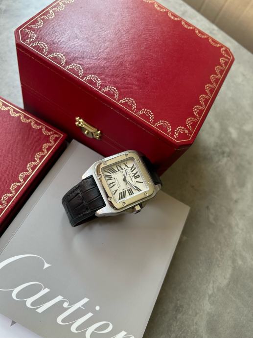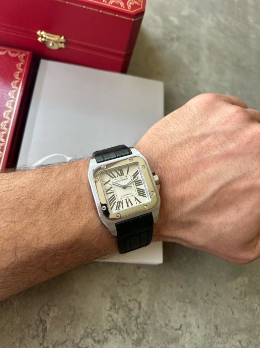 Prodajem Cartier Santos 100 XL. Dolazi s kutijom i papirima na koznom remenu made by Bodra.. Kupljen je 05/2005 te je za godine u top stanju...