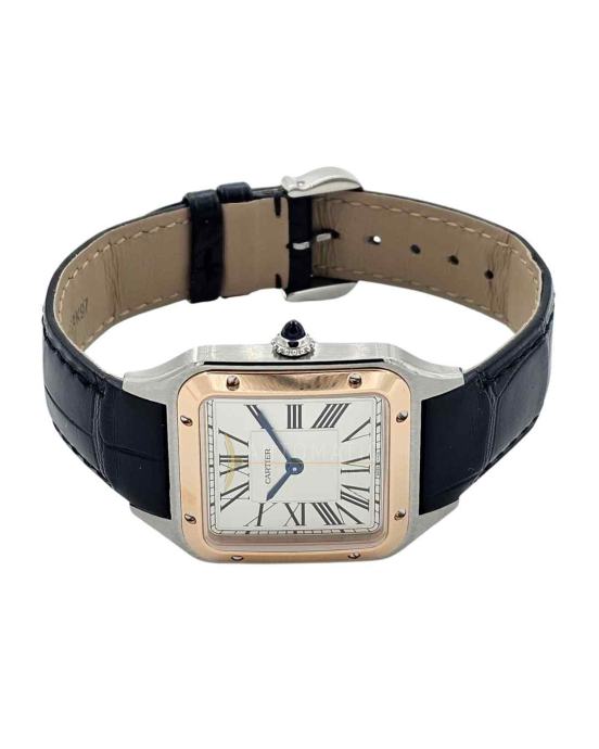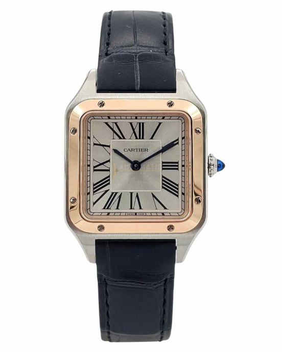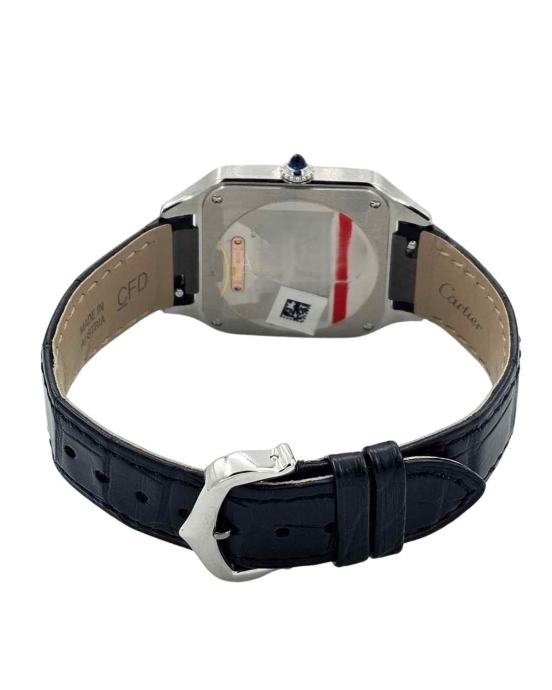 Model Santos-Dumont inspirisan je originalnim satom kreiranim početkom 20. veka, a karakterišu ga čistoća linija, minimalistički dizajn i prepoznatljivo kvadratno kućište sa vidljivim šrafovima. Pažljivo izrađen brojčanik odiše klasičnom Cartier estetikom, dok safirno staklo pruža trajnu zaštitu i vrhunsku preglednost. Sat je namenjen ljubiteljima suptilnog luksuza, elegancije i istorijskog značaja, idealan za formalne i poslovne prilike, ali i za svakodnevno nošenje. Precizna izrada i visok kvalitet materijala potvrđuju reputaciju brenda Cartier kao simbola prestiža i stila.
