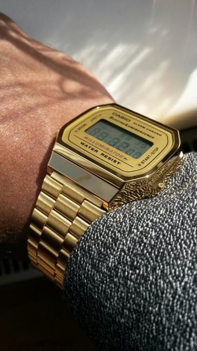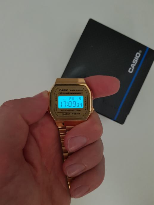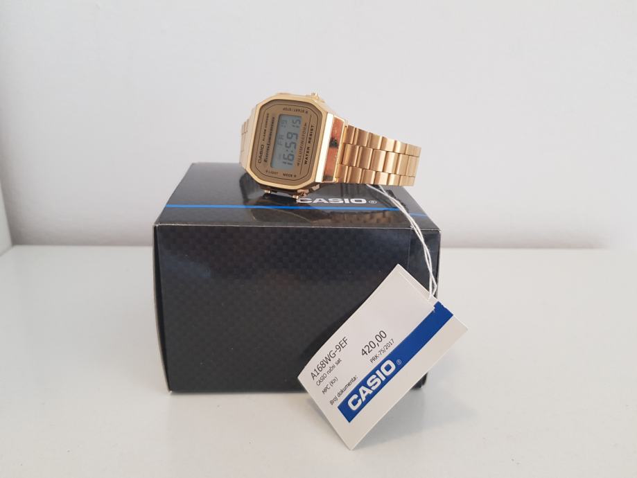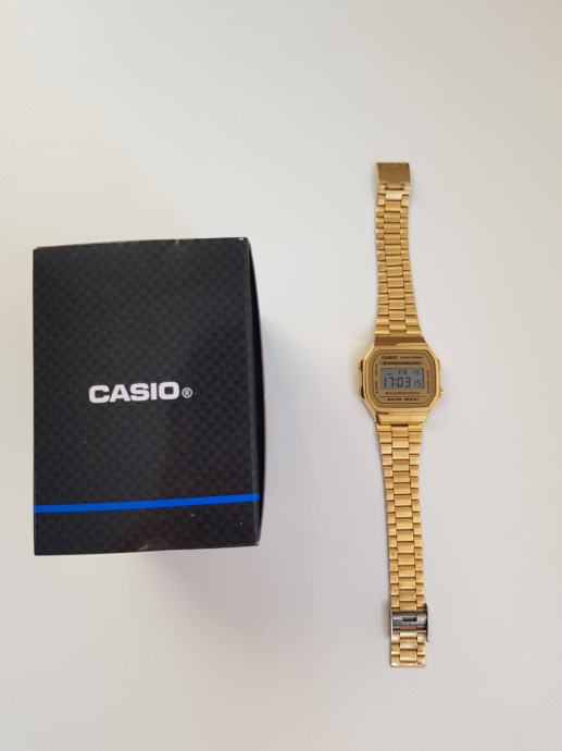 Casio A168WG-9EF, unisex sat, zlatne boje. Na satu sve radi, ima uobičajene tragove nošenja. dolazi s originalnom kutijicom.