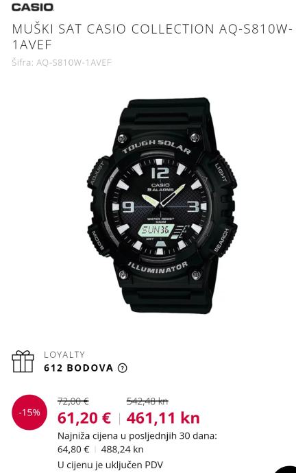 Prodajem muški ručni sat Casio. Sat pokreće baterija na solarno napajanje. Vrlo je točan i nakon određenog vremena stajanja u ladici jer se na štednji baterije zaustavi,ali čim ga se pomakne pokaže se točno vrijeme na displayu i kazaljke se dovedu u točnu poziciju. Sat je korišten,ali vrlo očuvan,i potpuno funkcionalan,a stanje je vidljivo na slikama. Javite za više informacija,poruka,poziv, WhatsApp...